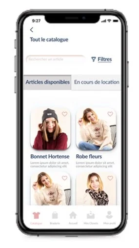 Les articles “loués” côtoient les articles “à louer” sur la page du catalogue. Les utilisatrices ressentent de la frustration car elles ont l'impression de passer "à côté" de bonnes affaires;