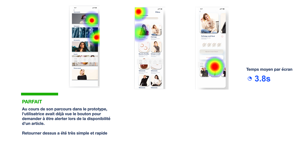 Ce CTA en plus d’aider l’utilisatrice dans sa quête d’articles favoris, permettra également aux équipes du Closet d'avoir une visualisation globale des articles très prisés et ainsi anticiper la quantité à choisir pour le réapprovisionnement de certains articles.